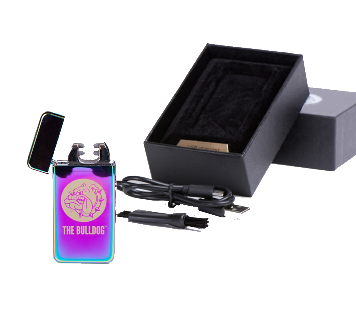 Le Briquet Plasma The Bulldog Amsterdam est un briquet électrique rechargeable par USB, sans gaz ni liquide. Il utilise deux arcs plasma atteignant environ 500 °C, ce qui lui permet d’allumer en conditions venteuses ou humides.