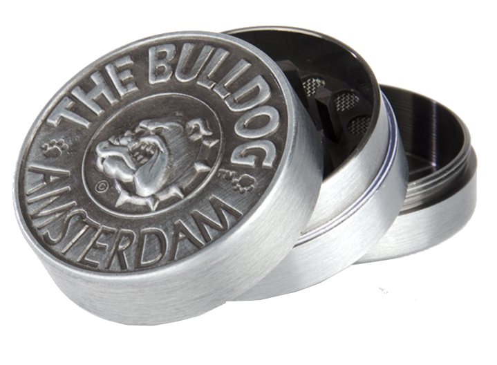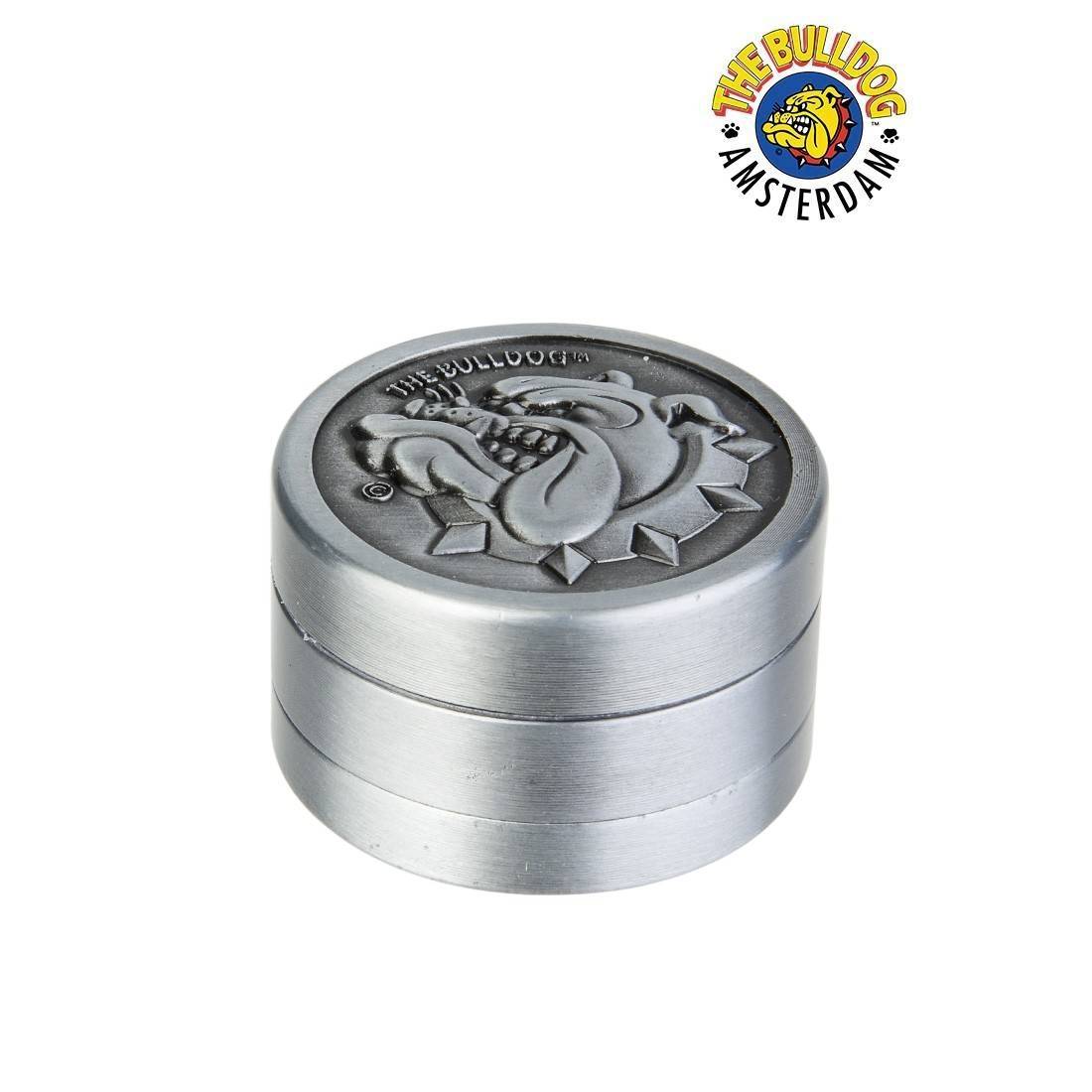 Il est fabriqué en aluminium léger, avec une finition métal mate ou noire, et affiche le logo The Bulldog embossé ou imprimé sur le couvercle.